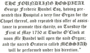 Messiah Performance under Handel's direction at the Foundling Hospital Chapel on 1st May 1750 |